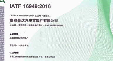泰安昊達(dá)汽車零部件有限公司位于新泰市經(jīng)濟(jì)開發(fā)區(qū)嶅山路7號,公司成立于2011年,是一家生產(chǎn)中、重型卡車底盤鑄鍛件、焊接件、發(fā)動(dòng)機(jī)配件的專業(yè)廠家,廠區(qū)占地面積101畝,2018年建設(shè)年產(chǎn)300萬件汽車零部件項(xiàng)目,項(xiàng)目總投資3.16億元,總建筑面積3.6萬平方米,是新泰市汽車裝配產(chǎn)業(yè)鏈的重點(diǎn)項(xiàng)目、2018年、2019年泰安重點(diǎn)項(xiàng)目,現(xiàn)已建設(shè)完畢,于2019年1月1日正式投入使用,設(shè)備新上覆膜砂自動(dòng)化鑄造生產(chǎn)線1條、熱模鍛生產(chǎn)線6條、自動(dòng)化焊接生產(chǎn)線10條、CNC加工設(shè)備200余臺套。 主要產(chǎn)品:中、重卡車底盤配件、轉(zhuǎn)向配件、中后橋氣室支架總成、中后橋配件、前橋轉(zhuǎn)向節(jié)臂、焊接配件、發(fā)動(dòng)機(jī)配件。產(chǎn)品主要銷往中國重汽集團(tuán)、市場份額約50%,位居行業(yè)鑄件產(chǎn)品前三。 公司擁有IATF16949:2016國際標(biāo)準(zhǔn)質(zhì)量管理體系認(rèn)證,擁有實(shí) ......